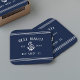 Add a cool custom touch to your fishing boat, sailboat, yacht, or houseboat with these personalized coasters. Classic nautical design in navy blue and white features your boat name, ship's registry, and year established in rustic white lettering with an anchor illustration and rope stripe detailing at the top and bottom.