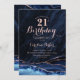 Navy Blue Rose Gold Agate Marble 21st Birthday Invitation
