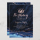 Navy Blue Rose Gold Agate Marble 60th Birthday Invitation