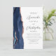 Navy Blue Rose Gold Agate QR Code Wedding Invitation