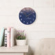 Navy Blue Rose Gold Blush Pink Glitter Monogram Large Clock