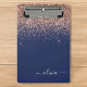 Navy Blue Rose Gold Blush Pink Glitter Monogram Mini Clipboard