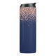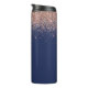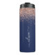 Navy Blue Rose Gold Blush Pink Glitter Monogram Thermal Tumbler