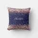 A navy blue background. Decorated with rose gold confetti. Personalize and add a name, written with a modern hand lettered style script. White colored letters.