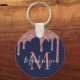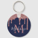 Navy Blue Rose Gold Faux Glitter Drips Monogram Keychain