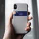 A navy blue background. The blue color is uneven. A rose gold and blush pink rose, floral and eucalyptus greenery and faux gold foliage. Personalize and add your name and address. White text.