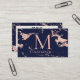 Stylish Elegant Navy Blue Copper Rose Gold Foil Marble Monogram Business Cards with your info on chic navy blue marble with coppery, rose gold foil styling. Add your QR code to the back for the perfect card! Feel free to contact us at cedarandstring@gmail.com if you need assistance with the design or matching products.