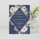 Navy Blue Rose Gold Frame Floral Engagement Party Invitation