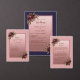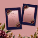 Navy Blue Rose Gold Script Burgundy floral wedding RSVP Card