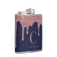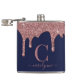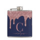 Navy Blue Rose Gold Sparkle Glitter Drips Monogram Flask