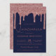 Navy Blue Rose Gold Sparkle Glitter Drips Quince Invitation