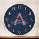 Navy Blue & Rose Gold Sparkle Glitter Monogram Large Clock