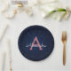 Navy Blue & Rose Gold Sparkle Monogram Initial Paper Plates