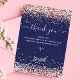 A navy blue background, decorated with rose gold confetti. Large hand lettered script and the text: Thank You. Personalize and add your thank you note and name.
