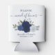Navy Blue Roses Elegant Maid of Honor Wedding Can Cooler