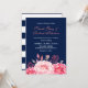 Navy Blue Roses Stripes Floral Wedding Invitation