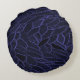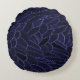This round pillow has a nature-inspired elegance with a modern abstract twist. The colors are deep navy blue, indigo, and subtle hints of violet accents. It features an intricate overlapping leaf pattern outlined with luminous thread-like detailing, creating a textured and dynamic appearance. The organic leaf shapes paired with the rich midnight tones give it a sophisticated and calming aesthetic. It is perfect for homeowners, interior designers, or anyone looking to add a touch of refined nature-inspired elegance to their living room, bedroom, or office space. Ideal for modern, bohemian, and contemporary interiors.
