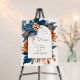 Navy Blue Rust Floral Elegant Wedding Welcome Sign
