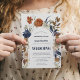 Summer flowers in earthy tones featuring a trending color combination of blue and rust. This beautiful watercolor floral wedding invitation has terracotta and rust tones with cream, beige and navy blue. The invitation has teamed two traditional serif fonts, creating an elegant and modern look. Easily edit the template to your bride and groom names and wedding details. Navy Blue Rust Watercolor Boho Wedding Invitation. Font color is Hex #2B324B.