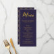 A chic rustic wedding menu, features your custom content in gold color over cobalt blue background.