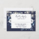 Navy Blue Rustic String Lights Floral Wedding RSVP Card