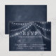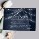 Navy Blue Rustic Tree Lights Wedding RSVP Card