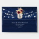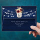 Complete your wedding suite with this rustic navy envelope featuring twinkle string lights, a mason jar monogram, and elegant floral accents in burgundy and blush. Ideal for barn, boho, or fall weddings with a romantic country charm.