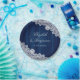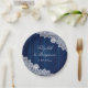 Elegant and romantic rustic navy blue wedding party paper plates inspired by barn wood and white floral lace.
