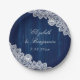 Navy Blue Rustic Wood Lace String Lights Wedding Paper Plates