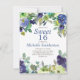 Sweet 16 birthday party invitation with pretty navy blue and sage green watercolor flowers.