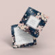 Modern business card with an abstract sakura florals and a navy blue wavy background and a white square on the forefront for all your information. Check out our store for more business card options.