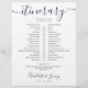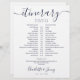 This stylish navy blue and white wedding itinerary schedule timeline can be personalized with your wedding details in chic lettering. Designed by Thisisnotme©