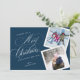 Navy Blue Script Collage Merry Christmas Photo Holiday Card