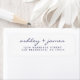 Chic, modern and simple wedding return address label with your names in navy blue elegant handwritten script calligraphy on a white background. Simply add your names and address. Exclusively designed for you by Happy Dolphin Studio. If you need any help or matching products please contact us at happydolphinstudio@outlook.com. We're happy to help you make your wedding the most beautiful day!