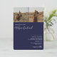 navy blue script names 3 photos qr code wedding invitation