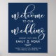 Stylish wedding sign featuring white modern calligraphy on navy blue background. This design is available in a variety of colors and script style.