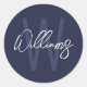 Navy Blue Script Personalized Monogram and Name Classic Round Sticker