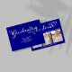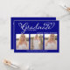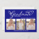 Celebrate your graduate with this elegant navy blue graduation photo card featuring stylish calligraphy script and a modern photo collage layout. Personalize with three senior portraits, graduate name, class year, and school information. The reverse side can include graduation party or open house details, making it perfect for sharing this special milestone with family and friends. A timeless design ideal for high school or college graduation celebrations.