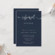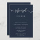 Plain white envelopes are included with paper invitations and will come to fit the invitation size you select. If you don’t need the envelopes, you may choose to not receive them by selecting the dropdown below "Envelopes" and choosing "None." If you’d like to have a design on your envelopes, you can browse all of these available envelopes to find the design that complements your Navy Blue Script Rehearsal Dinner Invitation.