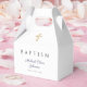 Navy Blue Script Religious Cross Boy Baptism Favor Boxes