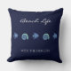 Navy Blue Sea Shells Fish Family Name Beach House Throw Pillow