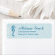 Pretty and trendy return address labels with a cute navy blue seahorse ocean design on an aqua watercolor background. Elegant and modern.