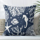 Add one of these beautiful navy blue and white coral and seahorse throw pillows to your living room and create a luxurious look and feel with a beautiful coastal style. These seahorse throw pillows were created by Totally Coast designer, Jillee K. They are available in different styles (Polyester, Zipperless, Cotton and Outdoor) and 3 different sizes (16" x 16", 20" x 20", 13" x 21"). You can select the style and size you want to the right of the pillow image under the labels of "Fabric" and "Size". © Totally Coast All Rights Reserved 2024