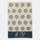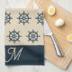 navy blue ship wheel & Monogram Beige Coastal home Kitchen Towel