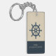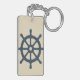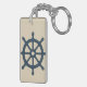 navy blue ship wheel with Name and Coordinates Keychain