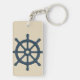 navy blue ship wheel with Name and Coordinates keychain