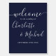 Featuring signature style names, this elegant navy blue welcome sign can be personalized with your information in chic lettering. Designed by Thisisnotme©