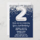 Navy Blue Silver 2nd Birthday Party Invitation