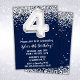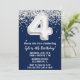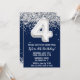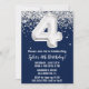 Navy Blue Silver 4th Birthday Party Invitation