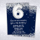 Navy Blue Silver 6th Birthday Party Invitation